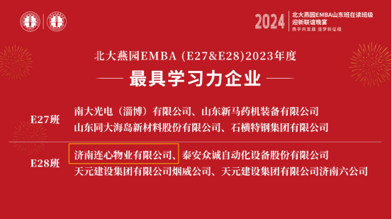 在北大燕園EMBA學(xué)習中,連心物業(yè)戚圣輝、曹立、孟令乾、李寶建等四位高層管理人員憑借認真學(xué)習態(tài)度和出色學(xué)習成績(jì),榮獲2023年度“優(yōu)秀學(xué)員獎,連心物業(yè)公司榮獲“最具學(xué)習力企業(yè)獎”。他們的優(yōu)異表現,充分展現了連心物業(yè)在培養高素養管理人才方面的實(shí)力與成效。