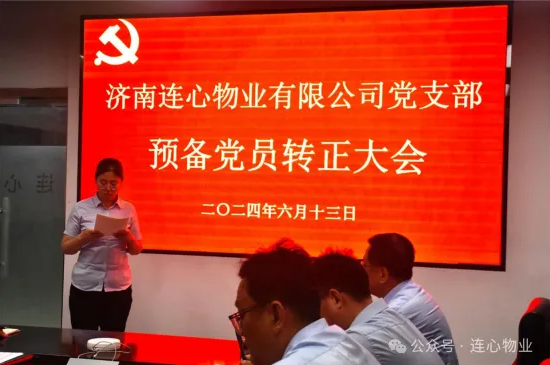 2024613日,濟南連心物業(yè)有限公司黨支部在1707會(huì )議室召開(kāi)了預備黨員轉正大會(huì ),本次會(huì )議主要議題是根據黨員發(fā)展程序,就預備黨員馬曉婷同志是否轉為中共正式共產(chǎn)黨員的事宜進(jìn)行全體黨員表決。