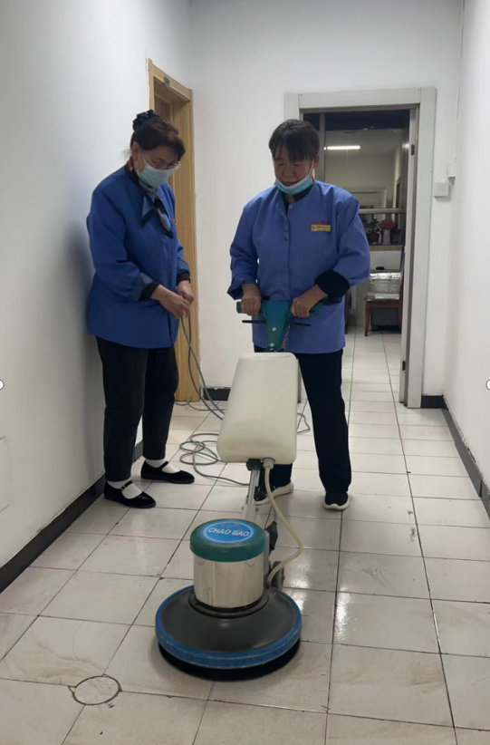 作為一名保潔班長(cháng),她嚴格要求自己,每天提前到崗,做好晨會(huì )準備。上崗后,按操作流程,有條不紊開(kāi)始消毒、清理衛生、收拾垃圾,她的服務(wù)區域總是最干凈、最整潔的。為提高大家的操作技能,陳大姐主動(dòng)學(xué)習雙層玻璃器、單擦機的使用方法,利用周末和假期教大家如何使用。在2023年的公司技能比武中,陳大姐和她的伙伴們穩定發(fā)揮,取得公司保潔組第二名的好成績(jì)。