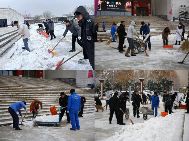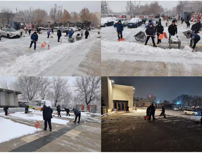 為保障文化館進(jìn)館參觀(guān)游客和市民的出行安全、游玩體驗,連心物業(yè)文化館項目部提前研判,備足掃雪工具、融雪劑等物資。“以雪為令,聞雪而動(dòng)”,及時(shí)啟動(dòng)雨雪天氣應急預案,加強巡查,對易滑易結冰路段做到雨雪不停留清掃不間斷,夜間加班清掃,清早組織員工再次進(jìn)行除雪破冰。此舉更是得到了省文化館領(lǐng)導的大力支持,領(lǐng)導不僅躬身入局,還帶領(lǐng)著(zhù)其他人員一起參與其中。大家不懼嚴寒,頂著(zhù)凜冽的寒風(fēng),手持鐵鍬和掃帚積極投入到熱火朝天的掃雪活動(dòng)中,對游客進(jìn)館參觀(guān)必經(jīng)的群星廣場(chǎng)、樓梯、四樓平臺等地方的積雪進(jìn)行清掃。盡管鵝毛般的大雪飄個(gè)不停,但是大家齊心協(xié)力、默契配合,鏟雪、鏟冰、裝車(chē)、清運、清掃一氣呵成,忙碌——成為風(fēng)雪中最靚麗的風(fēng)景線(xiàn)。你一鐵鍬我一掃帚,全力以赴、甩開(kāi)膀子加油干,為前來(lái)參觀(guān)的游客掃出一條“平安路”。寒冷的天氣并沒(méi)有影響大家保障游客參觀(guān)安全的決心,但更加堅定了文化館項目部對“1+1=1”的服務(wù)理念的堅守。