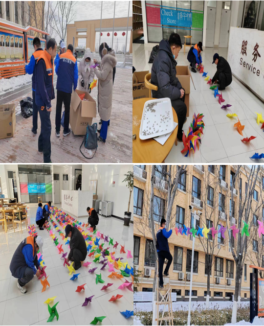 學(xué)校為給師生營(yíng)造更好的校園環(huán)境,在學(xué)校中間大道懸掛風(fēng)車(chē),在緊張的開(kāi)學(xué)工作下,項目經(jīng)理組織所有條線(xiàn)員工一起折風(fēng)車(chē)近800個(gè),組織安排有序,有折的、有串的、有固定的、有掛的,物業(yè)人其樂(lè )融融,通過(guò)團結合作,共同完成了校園風(fēng)車(chē)風(fēng)景的創(chuàng )作,得到了師生及家長(cháng)的贊美,并保障了開(kāi)學(xué)前各項活動(dòng)的有序進(jìn)行。
