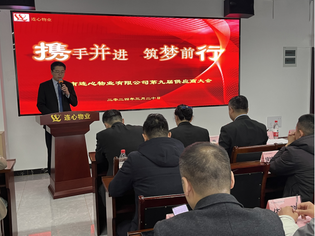 濟南連心物業(yè)有限公司黨支部副書(shū)記、總經(jīng)理曹立做總結講話(huà),對參加大會(huì )的供應商代表表示感謝并強調連心物業(yè)的供應商選擇原則、采購原則,進(jìn)一步強調在座各位供應商都是連心物業(yè)利益相連的伙伴。希望能通過(guò)此次會(huì )議,表達我們最真誠的感激之情,在以后的合作中,我們共同探索、攜手合作、創(chuàng )新合作模式、實(shí)現新突破,為共同發(fā)展尋找更大空間。