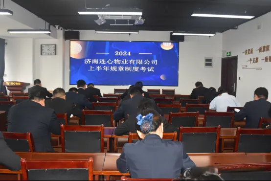 2024年4月19日下午16:30,濟南連心物業(yè)有限公司2024年上半年規章制度考試在濟南連心職業(yè)培訓學(xué)校1701會(huì )議室舉行。公司高管、辦公室人員、項目經(jīng)理、項目?jì)惹诘?/span>40余人參加此次考試,此次考試采用筆試閉卷的形式進(jìn)行。