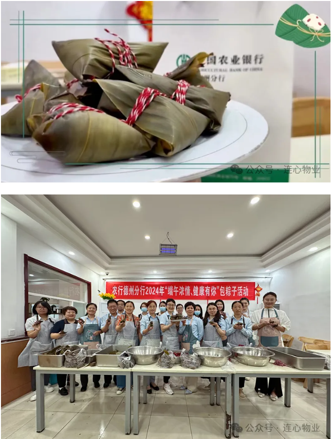悠悠艾草香,片片粽葉長(cháng)。端午節是我國的傳統節日,6月6日,濟南連心物業(yè)德州農行項目部與德州農行聯(lián)合開(kāi)展“粽葉飄香,健康端午”的主題活動(dòng)。德州農行職工及駐德州農行項目部員工參加本次主題活動(dòng)。