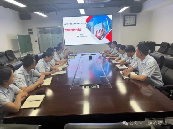 2024年7月12日下午,濟南連心物業(yè)有限公司2024年上半年經(jīng)營(yíng)分析會(huì )在1707會(huì )議室召開(kāi)。會(huì )議由公司黨支部副書(shū)記、總經(jīng)理曹立主持,公司高管、項目經(jīng)理、部門(mén)經(jīng)理、市場(chǎng)部人員等參加此次經(jīng)營(yíng)分析會(huì )。
