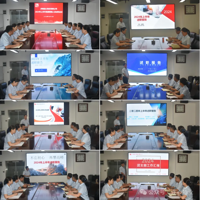 2024年7月10—15日,濟南連心物業(yè)有限公司進(jìn)行了2024年上半年工作述職。述職仍采用分層級形式進(jìn)行,副董事長(cháng)向董事長(cháng)述職,總經(jīng)理、副總經(jīng)理、總經(jīng)理助理等向董事長(cháng)、副董事長(cháng)述職,團支部書(shū)記、東西片區項目經(jīng)理、項目副經(jīng)理分別向黨支部副書(shū)記、總經(jīng)理及東西片區分管副總經(jīng)理述職。辦公室主任、財務(wù)經(jīng)理、人事經(jīng)理等參與此次工作述職的評定。