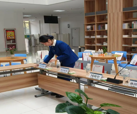 細致服務(wù),賓至如歸。會(huì )服條線(xiàn)精心策劃接待流程,耐心細致地布置會(huì )場(chǎng)。為讓訪(fǎng)團成員感受到家一般的溫暖,會(huì )服團隊在訪(fǎng)團參觀(guān)、學(xué)術(shù)交流等方面提供無(wú)微不至的服務(wù)。無(wú)論是茶點(diǎn)區還是舒適的休息區,都讓訪(fǎng)團成員在緊張行程中得到充分放松。