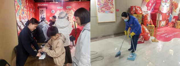 安全保障工作責任重于泰山。秩序維護團隊的成員們深知自己肩負的使命,他們的身影在文化館的各個(gè)區域穿梭不停,巡邏頻次增加,24小時(shí)不間斷。每一個(gè)展廳、每一間辦公區以及所有出入口,都被他們細致排查。不放過(guò)任何一個(gè)安全隱患,不放過(guò)任何一個(gè)可疑之處。環(huán)境清潔工作同樣不容忽視。春節期間,我們不僅將清潔頻次調整為每小時(shí)一次,還利用節前一個(gè)月的時(shí)間對文化館進(jìn)行深度清潔,確保場(chǎng)館內的每一個(gè)角落都煥然一新。我們的保潔手持清潔工具,穿梭于各個(gè)展廳之間,用細致入微的清潔工作,為參觀(guān)者營(yíng)造了一個(gè)干凈整潔的參觀(guān)環(huán)境。工程維修保證設施設備正常運行。在設施維設備護方面,我們提前一周對場(chǎng)館內的各項設施設備進(jìn)行了全面的檢查和維護,確保其在春節期間能夠高效、穩定地運行。同時(shí),工程維修團隊24小時(shí)值班,隨時(shí)準備應對可能出現的設施設備意外和例外故障,確保參觀(guān)體驗不受影響。客服服務(wù)形成靚麗風(fēng)景。春節期間,我們特別提前加強客服團隊的服務(wù)品質(zhì)培訓,提升了服務(wù)人員的專(zhuān)業(yè)素養和應變能力。無(wú)論是面對游客的問(wèn)詢(xún)、講解,還是提供必要的引導和幫助,我們的服務(wù)人員都以飽滿(mǎn)的熱情和專(zhuān)業(yè)的態(tài)度,耐心細致地為每一位參觀(guān)者提供周到細致的服務(wù)。