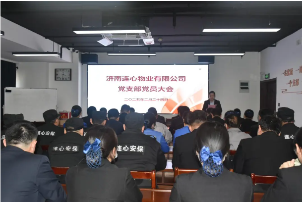 2025年2月24日下午,濟南連心物業(yè)有限公司黨支部在1701會(huì )議室召開(kāi)第一季度黨員大會(huì ),公司黨員41人參加本次大會(huì )、入黨積極分子及遞交入黨申請書(shū)人員列席本次大會(huì )。