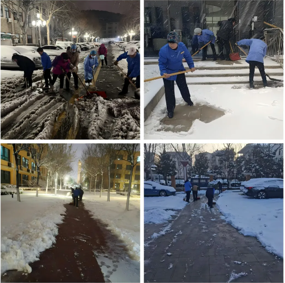 齊心協(xié)力保障暢通。為確保業(yè)主出行安全,連心物業(yè)各項目員工分工明確,配合默契,有的負責清掃積雪,有的負責撒布融雪劑,有的負責引導車(chē)輛通行。經(jīng)過(guò)數小時(shí)的奮戰,各單位主干道等區域積雪被清理干凈,為業(yè)主開(kāi)辟出一條條“安全通道”。