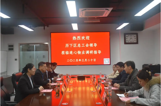 2025年3月20日下午,歷下區總工會(huì )副主席楊忠奎,基層工作部負責人劉忠,基層部工作人員張馨怡、盧光潤等領(lǐng)導一行蒞臨連心物業(yè),針對工會(huì )工作開(kāi)展情況進(jìn)行深入調研。連心物業(yè)黨支部書(shū)記、董事長(cháng)王宏勇,工會(huì )主席李寶建,工會(huì )副主席孫耀先,經(jīng)審委員馬曉婷參加調研匯報。