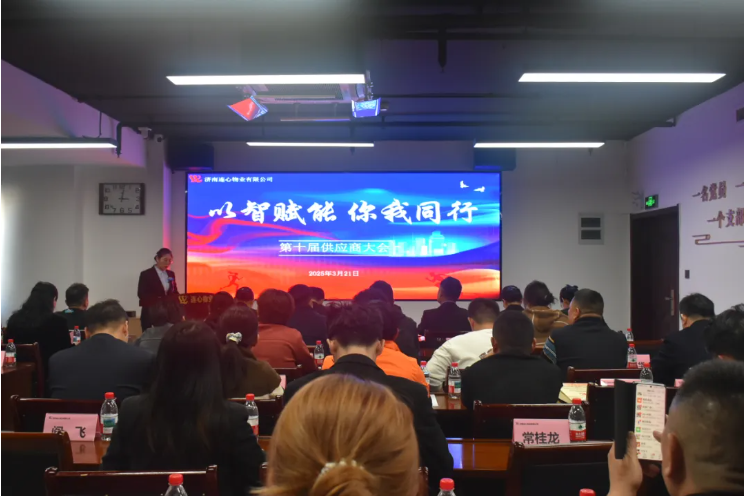 2025年3月21日,濟南連心物業(yè)有限公司第十屆供應商大會(huì )以“以智賦能 你我同行”為主題,在連心物業(yè)1701會(huì )議室召開(kāi)。來(lái)自商業(yè)保險、園林設備、清潔設備、安保設備、工裝制服、保潔用品、五金電料、勞保用品、標示標簽、廣告印刷、圖文制作、電梯維保、排污清淤、外墻清洗、油品商貿等40余家供應商代表參加本次會(huì )議。