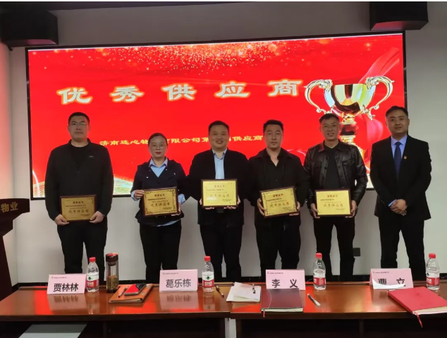 根據公司優(yōu)秀供應商評選辦法,有五家供應商被評為“濟南連心物業(yè)2024年度優(yōu)秀供應商”,分別是:濟南勝良貿易有限公司、濟南楚潤清洗工程有限公司、華海財產(chǎn)保險股份有限公司濟南中心支公司、濟南綠博園農林物資有限公司、濟南金谷源商貿有限公司。公司總經(jīng)理曹立為5家優(yōu)秀供應商頒發(fā)“優(yōu)秀供應商”證書(shū)。