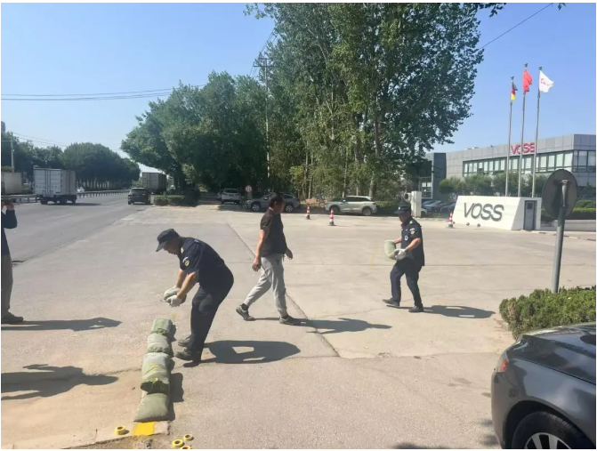 2025年6月16日防汛搶險演練。模擬遭遇強降雨,廠(chǎng)區低洼區域出現積水險情。連心物業(yè)駐福士汽車(chē)項目秩序維護應急分隊聞令而動(dòng),迅速集結,按照預案分工協(xié)作。立即向上級領(lǐng)導匯報。同時(shí)快速堆砌防洪沙袋,有效阻截水流倒灌。整個(gè)演練過(guò)程緊張有序,反應迅速,充分展現秩序維護隊伍在極端天氣下的快速響應與高效處置能力。