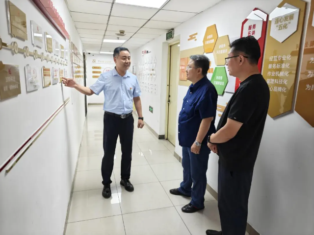 濟南連心物業(yè)有限公司黨支部副書(shū)記、總經(jīng)理曹立陪同濟南市工商聯(lián)領(lǐng)導參觀(guān)了公司總部企業(yè)建設文化墻、連心職業(yè)培訓學(xué)校等。連心物業(yè)企業(yè)建設文化墻用19個(gè)鮮活故事板塊,生動(dòng)展現公司在黨建引領(lǐng)下取得的成績(jì)和榮譽(yù)。連心職業(yè)培訓學(xué)校自成立以來(lái),為公司和社會(huì )培養輸送了大批技能崗位就業(yè)人員,既解決了企業(yè)招工難的問(wèn)題,又為社會(huì )提供了大批下崗失業(yè)人員的再就業(yè)機會(huì )。