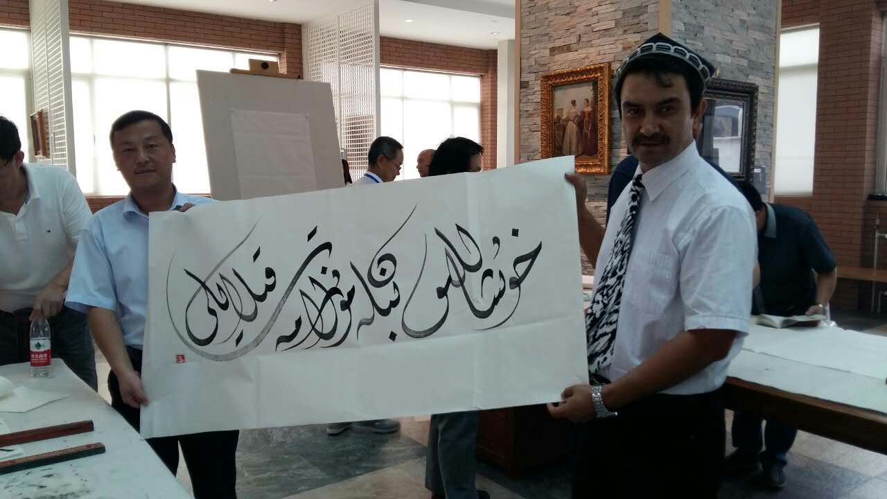 活動(dòng)現場(chǎng),所有工作人員精神飽滿(mǎn)、工作井然有序有條不紊。整個(gè)服務(wù)獲得了與會(huì )領(lǐng)導的高度贊揚。新疆書(shū)法家協(xié)會(huì )會(huì )員、新疆維吾爾自治區書(shū)法家協(xié)會(huì )副秘書(shū)長(cháng)、喀什地區書(shū)法家協(xié)會(huì )副主席庫爾班江?肉孜欣然為我公司題字:用心去做快樂(lè )服務(wù)!