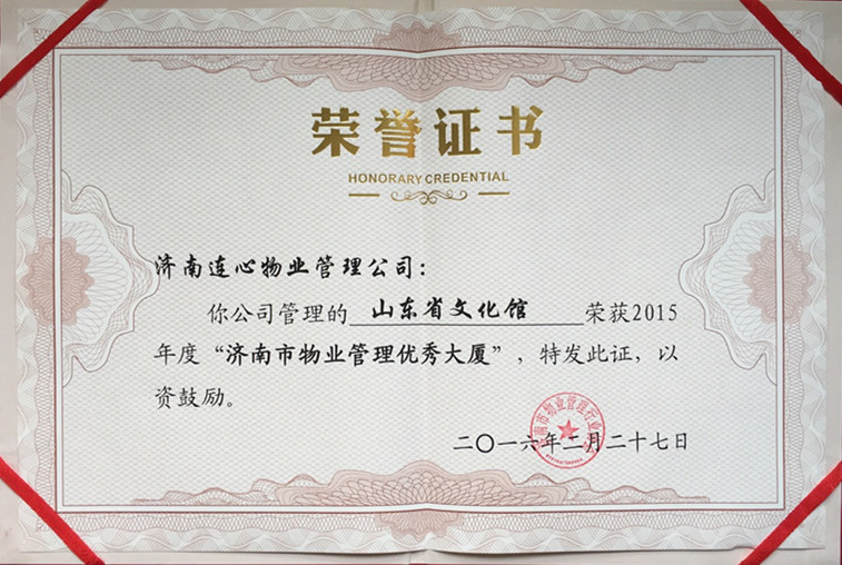 公司服務(wù)的山東省文化館項目榮獲濟南市物業(yè)管理優(yōu)秀大廈稱(chēng)號