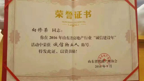 ——向修榮、王雪梅榮獲“山東誠信物業(yè)人”稱(chēng)號