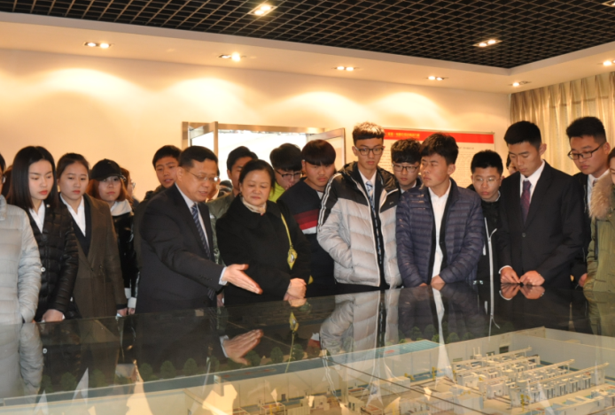 濟南連心物業(yè)有限公司總經(jīng)理王宏勇(左四)為師生進(jìn)行講解