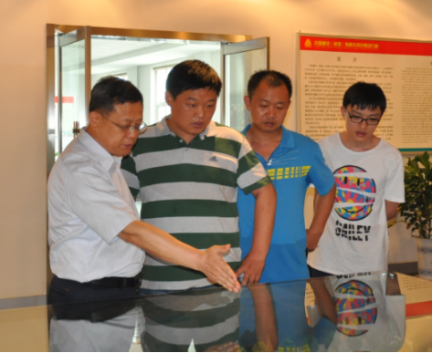 公司總經(jīng)理王宏勇陪同白超民部長(cháng)(左一)參觀(guān)