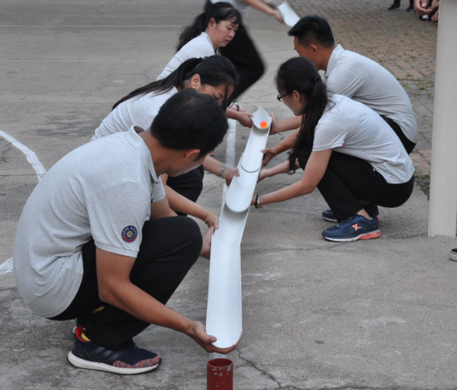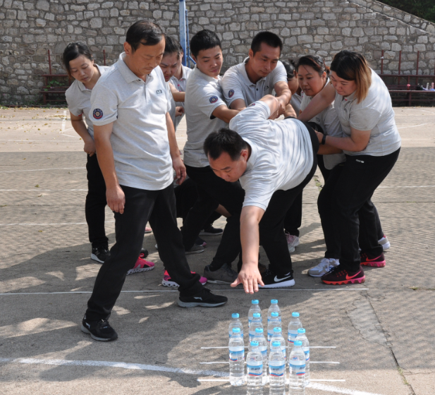 “群龍取水”利用有限的資源和團隊的智慧從雷區取水,所有隊員在規定線(xiàn)之外每人依次取得一瓶水,不允許瓶倒或者是相互觸碰,直到所有水取完為止。所有隊員經(jīng)過(guò)多次嘗試、商議后,最終決定從最遠的瓶子開(kāi)始拿,每個(gè)人都盡自己最大的能力去拿最遠的瓶子,反反復復的嘗試、最終大家在規定的時(shí)間內圓滿(mǎn)的完成了挑戰,面對壓力,大家能夠“臨危不亂”,主動(dòng)思考解決問(wèn)題的辦法,終于在一片歡呼聲中結束了第一項挑戰,第一項活動(dòng)的成功給大家帶來(lái)了挑戰困難的信心和決心,所有人以更加飽滿(mǎn)的熱情迎接下一個(gè)挑戰。