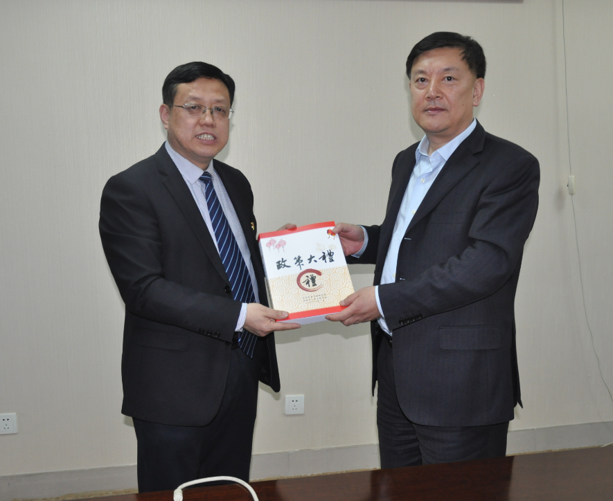 2018年2月13日下午,受濟南市委、市政府委托,濟南市政協(xié)副主席、中國重汽集團董事長(cháng)王伯芝到濟南連心物業(yè)有限公司進(jìn)行走訪(fǎng)慰問(wèn),向公司贈送《新時(shí)代民營(yíng)經(jīng)濟政策匯》,并向全體員工送上新春的祝福。省政協(xié)委員、市政協(xié)常委、市政協(xié)經(jīng)科委巡視員劉燕陪同。