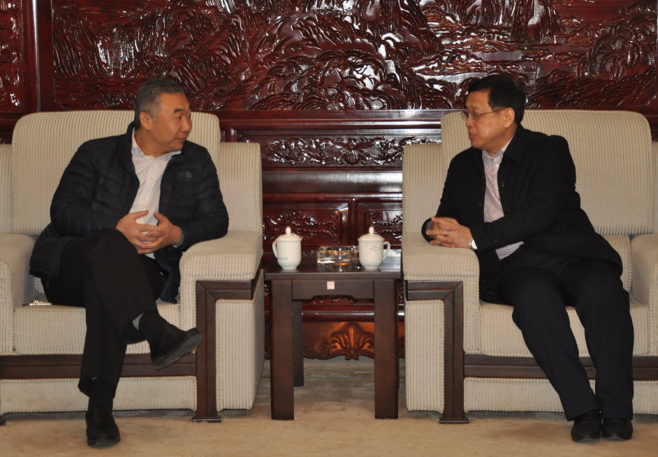 山東省人大常委、中國拍賣(mài)協(xié)會(huì )副會(huì )長(cháng)、山東省拍賣(mài)協(xié)會(huì )會(huì )長(cháng)李偉(左)與連心物業(yè)黨支部書(shū)記、總經(jīng)理王宏勇(右)進(jìn)行交流