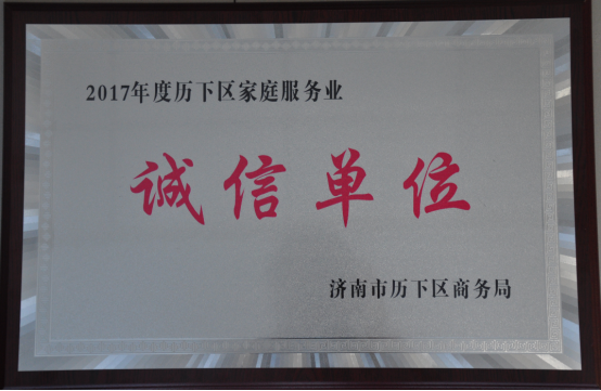 濟南連心物業(yè)有限公司榮獲2017年度歷下區家庭服務(wù)業(yè)誠信單位
