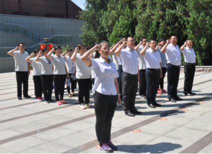 在孟良崮戰役紀念館大門(mén)前,我們傾聽(tīng)了駐地講解員的專(zhuān)業(yè)講解,讓我們重溫戰爭歲月,不忘革命戰士。在講解員的引導下,由公司黨支部書(shū)記、董事長(cháng)王宏勇同志整理挽聯(lián),公司部分黨員代表向革命烈士敬獻花籃,全體人員向革命烈士三鞠躬。在黨支部宣傳委員、人力資源部經(jīng)理李曉同志的帶領(lǐng)下,全體管理人員重溫入黨誓詞,感受入黨時(shí)的莊重與肅穆。