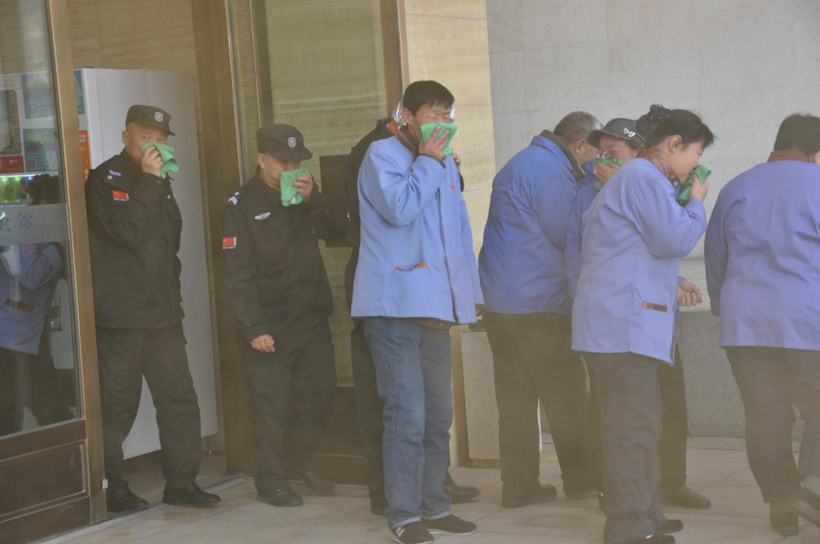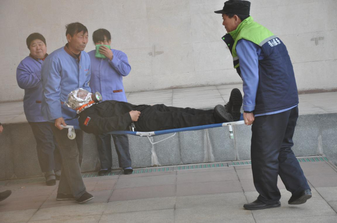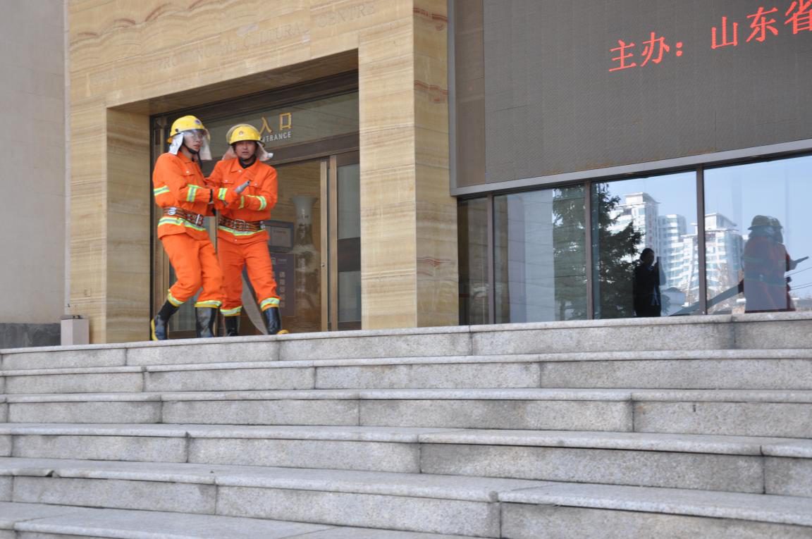 接下來(lái)是消防演練重要環(huán)節。此次消防演練分為三個(gè)階段,第一階段為緊急疏散,第二階段是滅火處理,第三階段為傷員救助。10點(diǎn)30分,隨著(zhù)山東省文化館行政科衛主任的一聲令下,火災演習正式開(kāi)始。