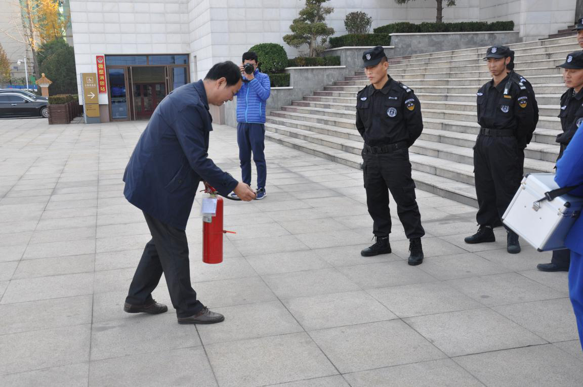 隨后,由山東省文化館行政主任衛偉同志對ABC型干粉滅火器的使用方法進(jìn)行了詳細講解并進(jìn)行現場(chǎng)演示。