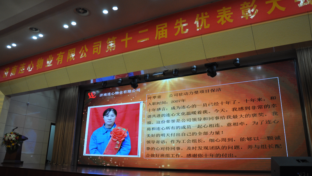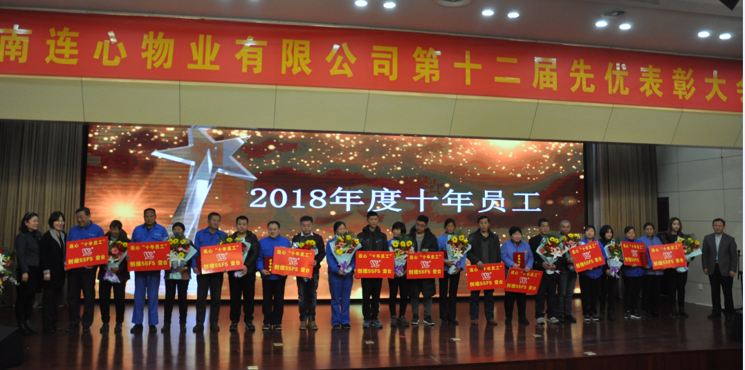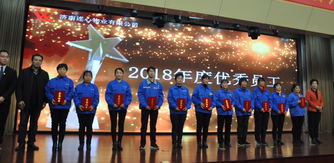 最激動(dòng)人心的時(shí)刻就是濟南市工商聯(lián)主席李景全、濟南市商務(wù)局副局長(cháng)張娟、濟南市總工會(huì )權益保障部部長(cháng)周延、濟南市住房保障和房產(chǎn)管理局物業(yè)處副處長(cháng)閆亮、濟南市歷下區總工會(huì )副主席王先懷、濟南市工商聯(lián)宣傳調研處處長(cháng)張攀峰、濟南市商務(wù)局商貿服務(wù)管理處處長(cháng)張鶴龍、濟南市天橋區住房保障與房產(chǎn)管理局科長(cháng)王海、濟南陽(yáng)光大姐有限公司副總經(jīng)理高玉芝等親自登臺為連心物業(yè)2018年度先優(yōu)者頒獎。一本本鮮紅的榮譽(yù)證書(shū)、一束束美麗的鮮花以及獎勵給十年員工的44臺55寸彩電是對他們多年來(lái)工作的認可,是對他們辛勤付出的褒獎,這是公司繼2014年獎勵25臺55寸大彩電、2016年獎勵23臺55寸大彩電后第三次獎勵工作連續滿(mǎn)十年員工,這也將繼續激勵員工在自己的崗位上不斷奉獻自己、提升自己,為公司更好的發(fā)展而努力。