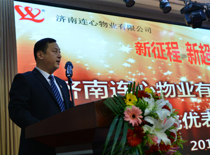 本屆先優(yōu)表彰大會(huì )由濟南連心物業(yè)有限公司工會(huì )主席吳建軍主持,表彰了“朱興農等2018年度優(yōu)秀共產(chǎn)黨員3名”、“李麗娜等2018年度優(yōu)秀員工47名”以及截止至2018年12月31日在公司工作滿(mǎn)十年的員工44名”。濟南連心物業(yè)有限公司黨支部書(shū)記、董事長(cháng)王宏勇對各位領(lǐng)導的蒞臨指導致歡迎辭,他表示:連心物業(yè)發(fā)展到今天趕上了好機遇,得益于各級領(lǐng)導對非公經(jīng)濟的關(guān)心、關(guān)懷和指導,以及廣大員工認真工作、全體員工家屬默默支持的結果。