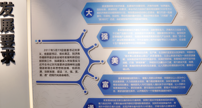 2017年5月19日省委書(shū)記劉家義,省委副書(shū)記、省長(cháng)龔正,到濟南市調研并座談省會(huì )城市發(fā)展和新舊動(dòng)能轉換工作,強調要深入貫徹落實(shí)習近平總書(shū)記系列重要講話(huà)精神和治國理政新理念新思想新戰略, 搶抓機遇,創(chuàng )新發(fā)展,建設大、強、美、富、通”的現代化省會(huì )城市。