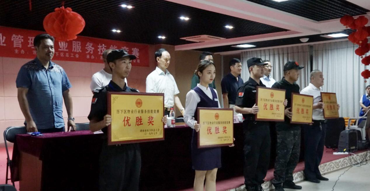 經(jīng)過(guò)激烈的角逐,最終獲得單項“優(yōu)勝獎”的單位是濟南連心物業(yè)有限公司工程維修隊、山東明英物業(yè)消防演示隊、山東省眀德物業(yè)客戶(hù)服務(wù)隊、山東省誠信行物業(yè)秩序維護隊、北京信隆酒店物業(yè)環(huán)境保潔隊。獲得單位“優(yōu)秀組織獎”的是濟南連心物業(yè)和山東省眀德物業(yè)。歷下區總工會(huì )副主席王先懷同志對本次活動(dòng)做了總結講話(huà):技能型人才是社會(huì )緊缺的人才,我們通過(guò)此次比賽加深了彼此之間的交流,各個(gè)企業(yè)之間互相學(xué)習,互相切磋技藝,把弘揚勞模精神、勞動(dòng)精神和工匠精神貫穿于競賽活動(dòng)全過(guò)程,圍繞全區中心工作,引導職工主動(dòng)擔當作為,積極落實(shí)上級工會(huì )關(guān)于開(kāi)展勞動(dòng)競賽的要求,開(kāi)展技能比武,以比促學(xué),切實(shí)提高了職工專(zhuān)業(yè)技能水平。我們要充分發(fā)揮建功立業(yè)競賽活動(dòng)推動(dòng)全省首善之區建設的的重要作用。