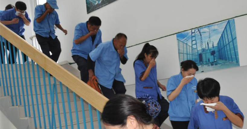 15:30分,消防演習實(shí)戰準時(shí)開(kāi)始。隨著(zhù)總指揮孟令乾同志一聲“啟動(dòng)”命令,火警應急預案立即執行:一人迅速撥打火警119,說(shuō)清著(zhù)火地點(diǎn),火勢大小,燃燒物質(zhì)和報警人姓名電話(huà),一人在路口等候消防車(chē)。同時(shí)滅火組,救援組,疏散組,秩序維護組同時(shí)奔赴著(zhù)火現場(chǎng),按各自分工,有條不紊進(jìn)行工作。疏散組不停提醒大家不要慌亂,不乘坐電梯,用濕毛巾掩囗鼻,彎腰低姿,靠承重墻有序撤離,撤到安全區域后,清點(diǎn)人數。