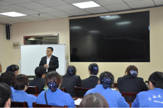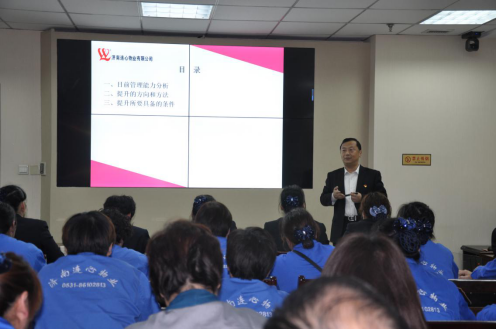 為提升班組長(cháng)、工會(huì )組長(cháng)的管理能力和工作效率,確保項目各項服務(wù)工作順利有序運行。2019年11月8日下午2點(diǎn),濟南連心物業(yè)有限公司在濟南市順河東街66號濟南連心職業(yè)培訓學(xué)校2307教室,舉行了2019年度第4季度班組長(cháng)、工會(huì )組長(cháng)培訓。濟南連心職業(yè)培訓學(xué)校主講教師、公司副總經(jīng)理、工會(huì )主席吳建軍以《我們的管理與提升》為題,為來(lái)自公司各項目的60余名班組長(cháng)、工會(huì )組長(cháng)進(jìn)行了系統培訓。