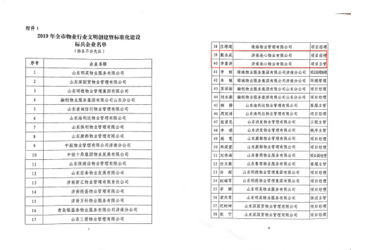 2020年1月4日上午9:00,濟南市物業(yè)管理行業(yè)協(xié)會(huì )在燕子山莊一號樓禮堂隆重舉行表彰大會(huì )。本次會(huì )議表彰了濟南連心物業(yè)有限公司等30家“全市物業(yè)行業(yè)文明創(chuàng )建暨標準化建設標兵企業(yè)”、表彰了濟南連心物業(yè)有限公司等50家“2019年度優(yōu)秀會(huì )員單位”、表彰了戴永成、李喜洪等100名“全市物業(yè)行業(yè)文明創(chuàng )建暨標準化建設服務(wù)明星”。