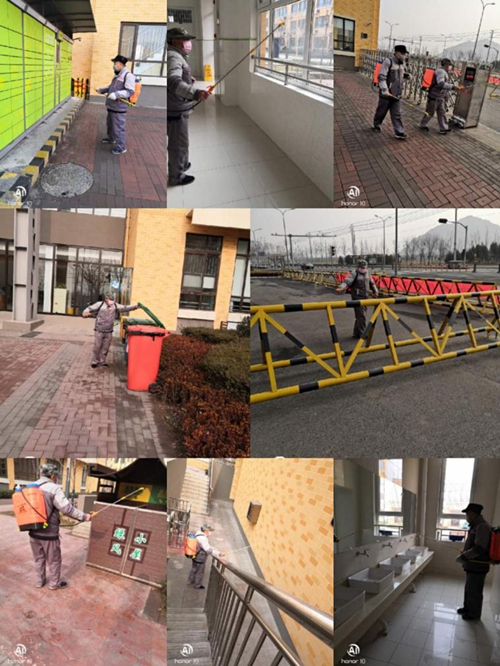 2020年春節,新型冠狀病毒入侵以來(lái),濟南連心物業(yè)駐濟南外國學(xué)校項目員工在項目經(jīng)理戴永成的安排部署下,每天堅守的在自己的崗位上,進(jìn)行各項疫情防控消毒工作。作為連心物業(yè)人的使命就是為學(xué)校師生提供一個(gè)安全、清潔、文明的工作、學(xué)習、生活環(huán)境,面對肆虐的疫情,沖鋒在前是我們作為物業(yè)人的責任?!耙咔橹委熞痪€(xiàn)在醫院,疫情防控一線(xiàn)在物業(yè)”,在這場(chǎng)突如其來(lái)的戰役中,做好防疫消毒工作,讓廣大師生有一個(gè)安全、放心的學(xué)習、生活、工作環(huán)境,是我們連心物業(yè)每一個(gè)員工應盡的義務(wù)和責任。
