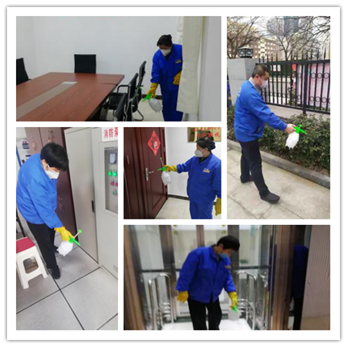 物業(yè)人員對院落、電梯轎廂、辦公室、及公共區域進(jìn)行消毒