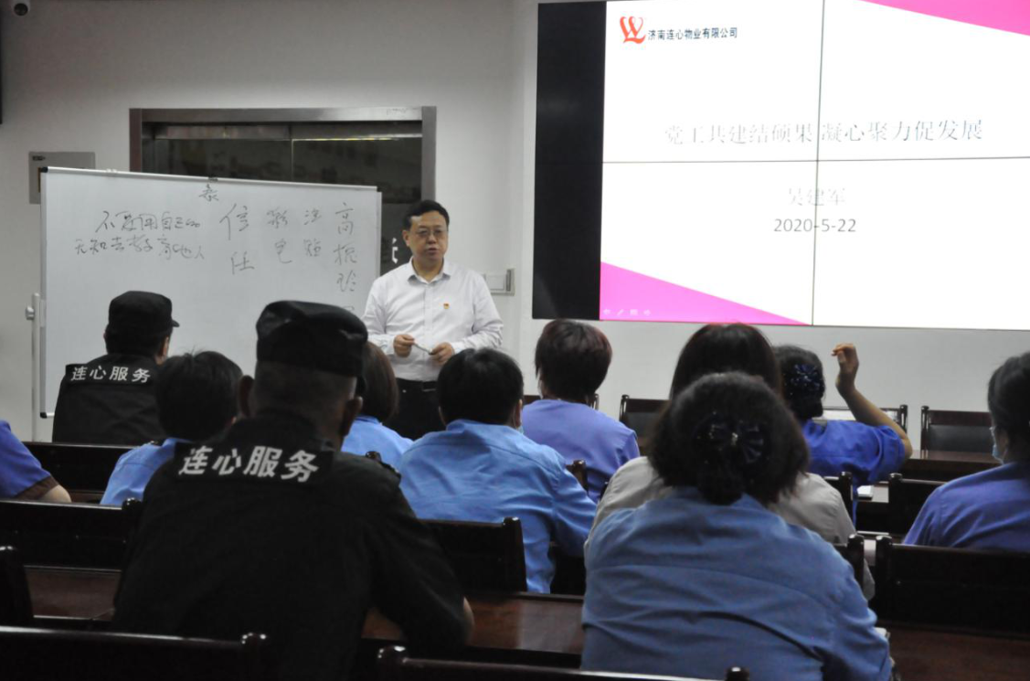 2020年5月22日下午14點(diǎn),濟南連心物業(yè)有限公司工會(huì )委員會(huì )在順河東街66號濟南連心職業(yè)培訓學(xué)校2307教室舉行了2020年上半年度工會(huì )組長(cháng)培訓,公司副總經(jīng)理、工會(huì )主席、連心職業(yè)學(xué)校主講教師吳建軍以《黨工共建結碩果 凝心聚力促發(fā)展》為題進(jìn)行授課,來(lái)自公司各項目的20多名工會(huì )組長(cháng)參加了此次培訓。