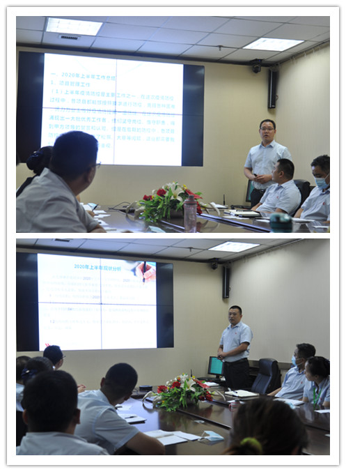 副總經(jīng)理、工會(huì )主席吳建軍、副總經(jīng)理曹立、常務(wù)副總經(jīng)理孟令乾分別從各自分管的業(yè)務(wù)角度對2020年上半年的工作進(jìn)行了總結與分析,并對2020年下半年的工作制定了詳細的實(shí)施計劃。公司黨支部副書(shū)記、總經(jīng)理戚圣輝從公司整體運營(yíng)角度,對上半年公司疫情防控、市場(chǎng)拓展、績(jì)效考核、項目管理及標準化建設等幾方面工作進(jìn)行了深層次的剖析,針對目前存在的問(wèn)題提出了可操作性的解決方案,明確了下半年工作的具體規劃。