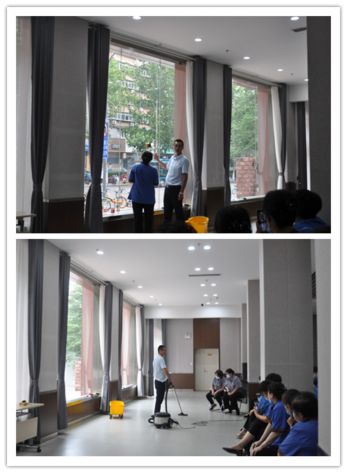 下午,培訓講師張奇帶領(lǐng)參訓學(xué)員工到達公司所服務(wù)的山東省文化館分館項目進(jìn)行實(shí)操培訓,結合保潔專(zhuān)業(yè)理論知識,進(jìn)行實(shí)踐操作與演練培訓。張奇將保潔員在工作中常用的工具進(jìn)行介紹和標準化操作演示。結合學(xué)員在實(shí)際工作中存在的操作誤區和可能遇到的問(wèn)題進(jìn)行詳細講解,每項工具操作演示后,均安排參訓的學(xué)員逐項進(jìn)行實(shí)際操作與演練,對操作過(guò)程中的錯誤進(jìn)行現場(chǎng)糾正。