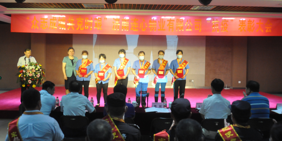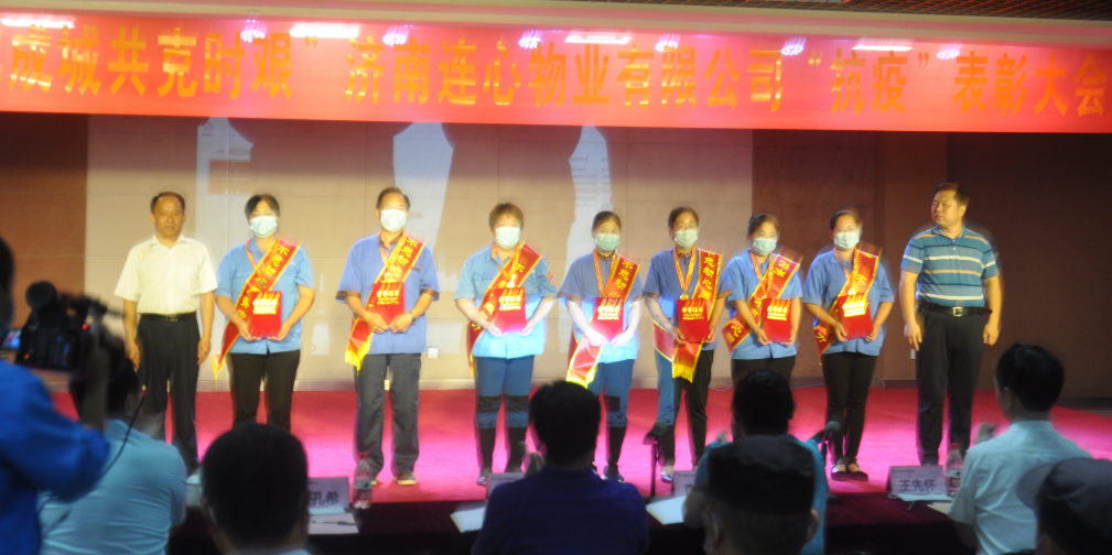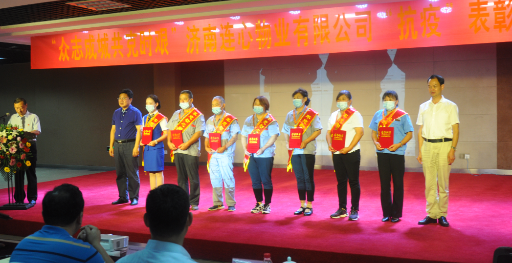 2020年9月16日上午,濟南連心物業(yè)有限公司在山東省文化館音樂(lè )廳隆重舉行“眾志成城 共克時(shí)艱”抗疫表彰大會(huì )。出席本次表彰大會(huì )領(lǐng)導有濟南市總工會(huì )文體宣教部部長(cháng)周延、山東省文化館館長(cháng)王衍良、濟南市歷下區總工會(huì )三級調研員王先懷、濟南市總工會(huì )權益保障部副部長(cháng)董文峰、山東省文化館黨總支成員、辦公室主任李思峰、千佛山街道辦事處黨建辦副主任、工會(huì )主席趙孔希。公司陪同出席的有濟南連心物業(yè)有限公司黨支部書(shū)記、董事長(cháng)王宏勇、黨支部副書(shū)記、總經(jīng)理孟令乾、副總經(jīng)理曹立、總經(jīng)理助理李義等。