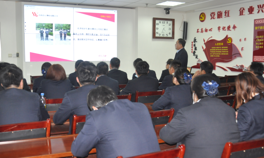 2020年10月9日下午,濟南連心物業(yè)有限公司秩序維護標準化培訓在濟南連心職業(yè)培訓學(xué)校2307教室舉行,公司總部辦公室人員、各項目經(jīng)理、項目?jì)惹诘冉?0人參加了此次培訓。
