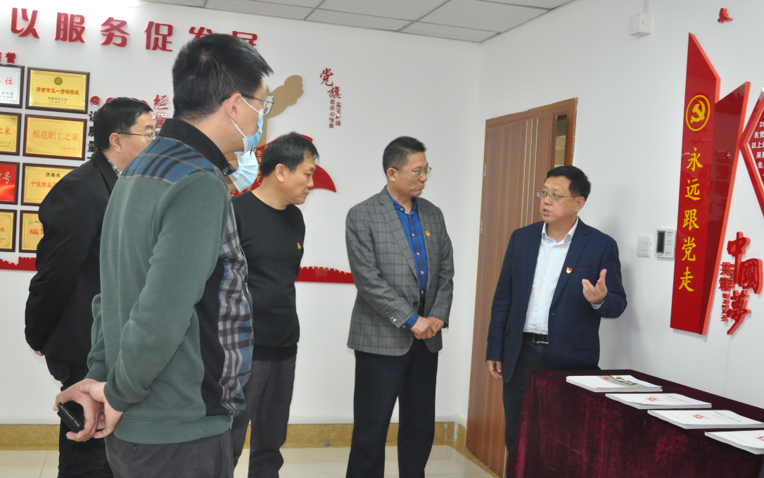 2021年4月8日下午,濟南市派歷下區“四進(jìn)”工作二組組長(cháng)、市政協(xié)委員活動(dòng)工作室副主任張偉超帶領(lǐng)工作組成員:市政府與社會(huì )資本合作服務(wù)中心正處級領(lǐng)導干部陶占紅、市科協(xié)二級調研員王明磊、歷下區燕山街道辦生活服務(wù)中心科級干部董建成和歷下區解放路街道辦科技干部張霄,一行5人到濟南連心物業(yè)公司服務(wù)的山東省文化館項目開(kāi)展主題黨日活動(dòng)。連心物業(yè)黨支部書(shū)記、董事長(cháng)王宏勇,黨支部副書(shū)記、總經(jīng)理孟令乾,黨支部委員、工會(huì )主席李寶建,辦公室主任劉亞楠,公司駐山東省文化館項目經(jīng)理張奇陪同參加活動(dòng)。