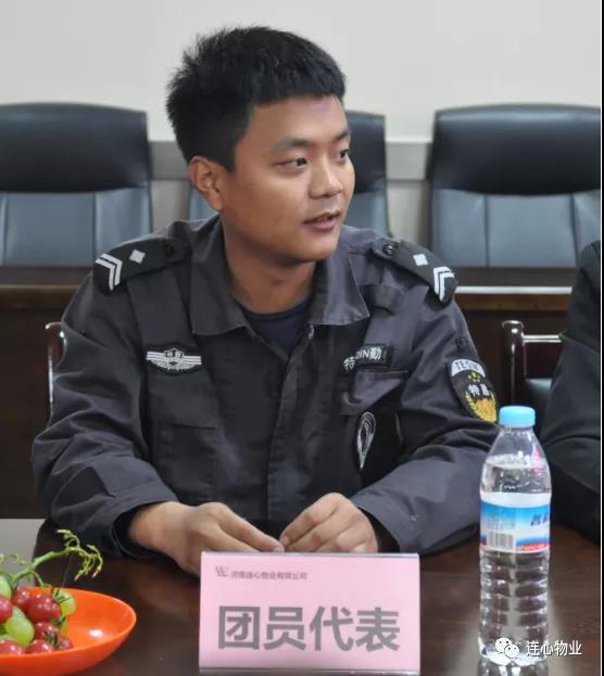 來(lái)自山東省文化館項目的秩序維護寇性泉同志曾是一名國有企業(yè)員工,也是一名優(yōu)秀的共產(chǎn)黨員,他在座談會(huì )上表示,年輕人是一群富有活力,朝氣蓬勃的群體,有能力、有希望開(kāi)創(chuàng )新未來(lái)。我們連心物業(yè)是一家積極向上,勇?tīng)幧嫌?,充滿(mǎn)正能量的公司,為年輕人提供了廣闊的舞臺,所以年輕人要抓住機會(huì ),奮發(fā)努力,在連心大舞臺上展現自己、創(chuàng )造輝煌。