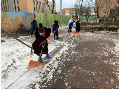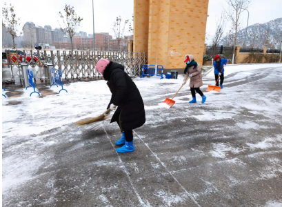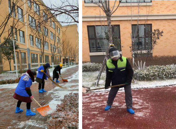 首先與學(xué)校溝通,將清雪工具提前申領(lǐng),并將存放點(diǎn)告知員工,其次按照師生出行主要路線(xiàn),劃分清雪責任區域,明確責任區內清雪人員。