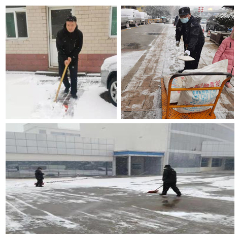 在總經(jīng)理李寶建的帶領(lǐng)下從主干道,到每一個(gè)出入口,從寫(xiě)字樓前到每一個(gè)車(chē)位,都進(jìn)行了徹底打掃,大家熱火朝天的工作渾然不覺(jué)不知是雪水還是汗水打濕的衣領(lǐng)和凍得發(fā)紅的臉,只想快速清除積雪,暢通道路,踐行連心“1+1=1”的服務(wù)理念。