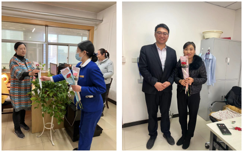 “芳華自在,笑靨如花”這是連心物業(yè)對所有“女神”的美好祝愿。這一天,我們的會(huì )服工作人員早已精神飽滿(mǎn)的在大廳迎接在德州農行工作的所有“女神”們,為“女神”們精心準備了芬芳四溢的康乃馨和充滿(mǎn)愛(ài)意的祝??ㄆ??!芭瘛眰兪盏蕉Y物后開(kāi)心的拍照留念。